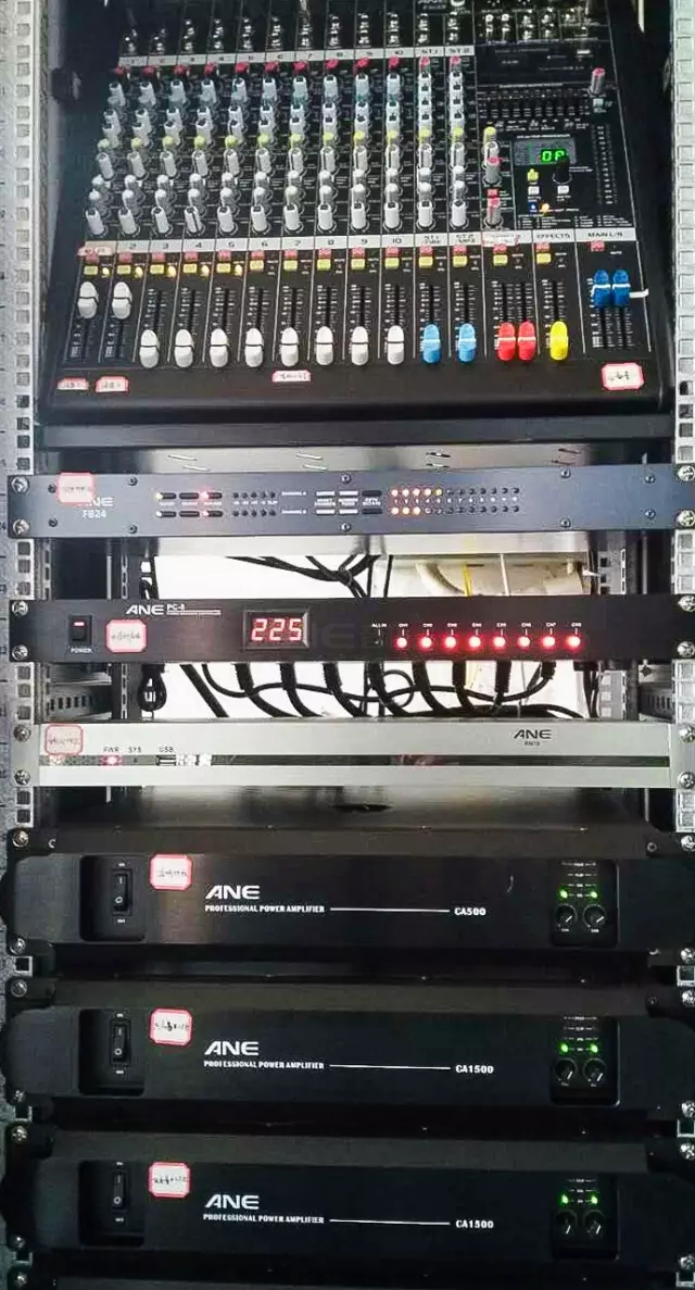 操場(chǎng)周邊使用ANE防水音柱和仿真石頭音箱,美觀大方,持久耐用,合理的分布使學(xué)校周邊范圍廣播效果好,使每一個(gè)區(qū)域都能廣播到。操場(chǎng)舞臺(tái)區(qū)域則使用線性陣列,為我公司開(kāi)發(fā)出的中、大型線性陣列演出系統(tǒng),三點(diǎn)式全拉鋁吊裝,二路外置分頻處理,可以滿足大型的擴(kuò)聲需要。高低音清晰,低頻表現(xiàn)良好,音色還原準(zhǔn)確。
