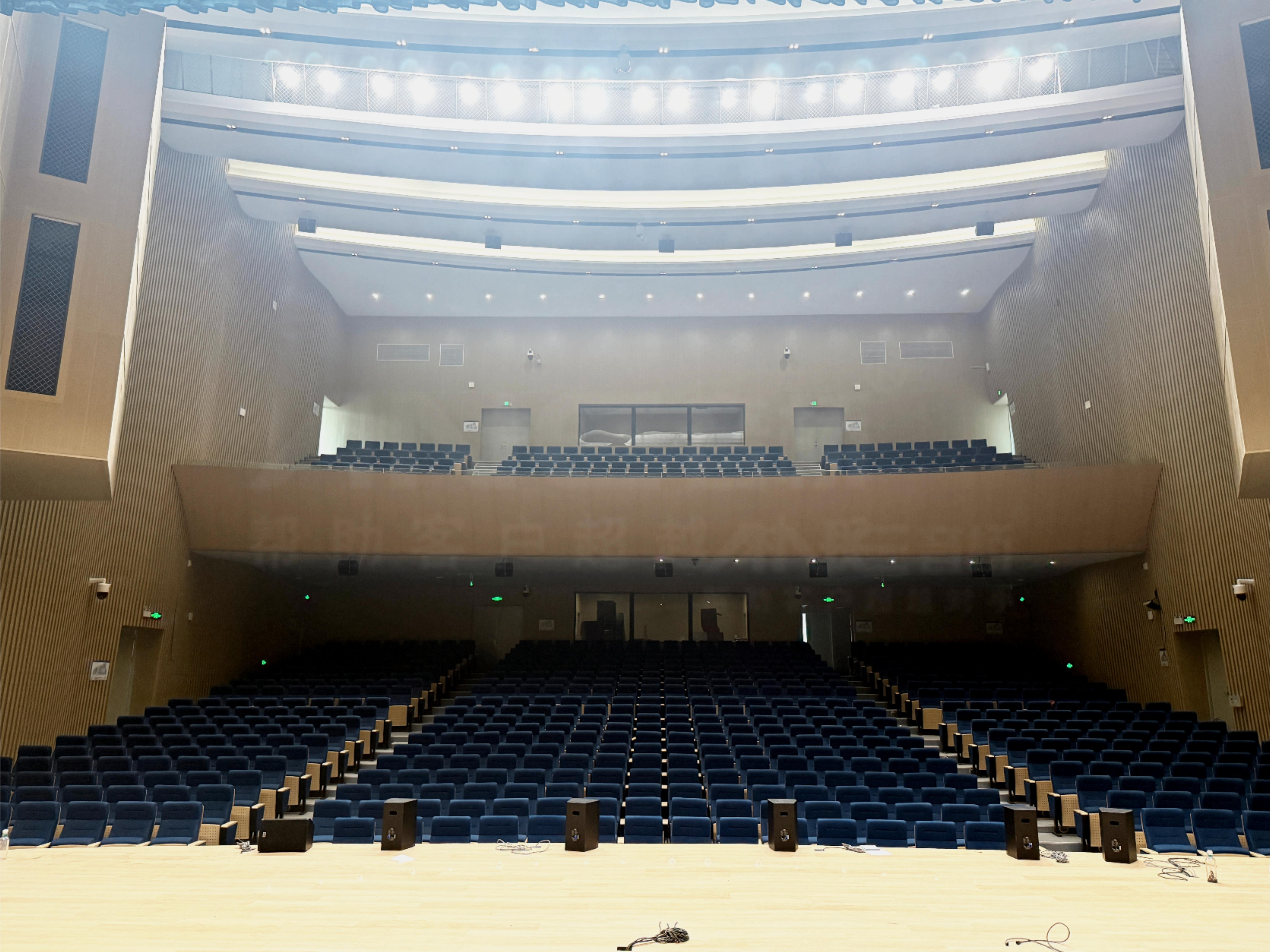 中小型報(bào)告廳則采用緊湊型擴(kuò)聲系統(tǒng)與高品質(zhì)商顯設(shè)備,功能定位更貼合研討課、組會(huì)討論、小規(guī)模答辯與培訓(xùn)場景。ANE根據(jù)空間特性定制了輕量化擴(kuò)聲方案,聲音覆蓋均衡、語言還原度高,同時(shí)保持設(shè)備結(jié)構(gòu)簡潔、維護(hù)便利。會(huì)議系統(tǒng)支持發(fā)言管理、權(quán)限控制、自動(dòng)攝像跟蹤,可在日常教學(xué)與研討中提供高效的溝通保障。舞臺(tái)燈光系統(tǒng)則以柔和、功能性強(qiáng)的照明方式為主,通過合理布置面光、頂光及輔助燈具,使空間光環(huán)境層次更豐富、視覺體驗(yàn)更舒適,滿足學(xué)術(shù)、教學(xué)與展示三類使用需求。