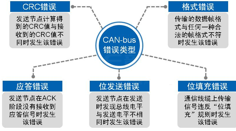 4.錯誤幀:雖然CAN總線是可靠性很高的總線,但是依然會出錯:CAN總線上會出現(xiàn)5種錯誤。